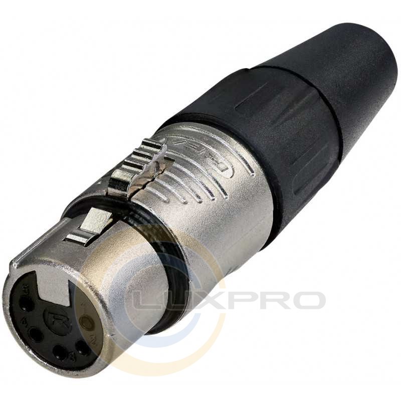 RC5F-D - разъем мама 5-контактный, фланец типа D, хромированный корпус, серебряные контакты под пайку.