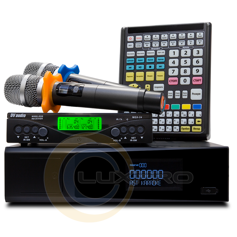 Возможности караоке-комплекта AST Mini Set раскрывают весь потенциал современного клубного караоке. Удобное управление при помощи пульта дистанционного управления или смартфона, простой и понятный интерфейс, быстрый и умный поиск, поддержка трёх языков, хорошо звучащие микрофоны, качественная запись исполнения и интеллектуальная оценка исполнения (баллы за пение) - вот основные особенности этого комплекта: