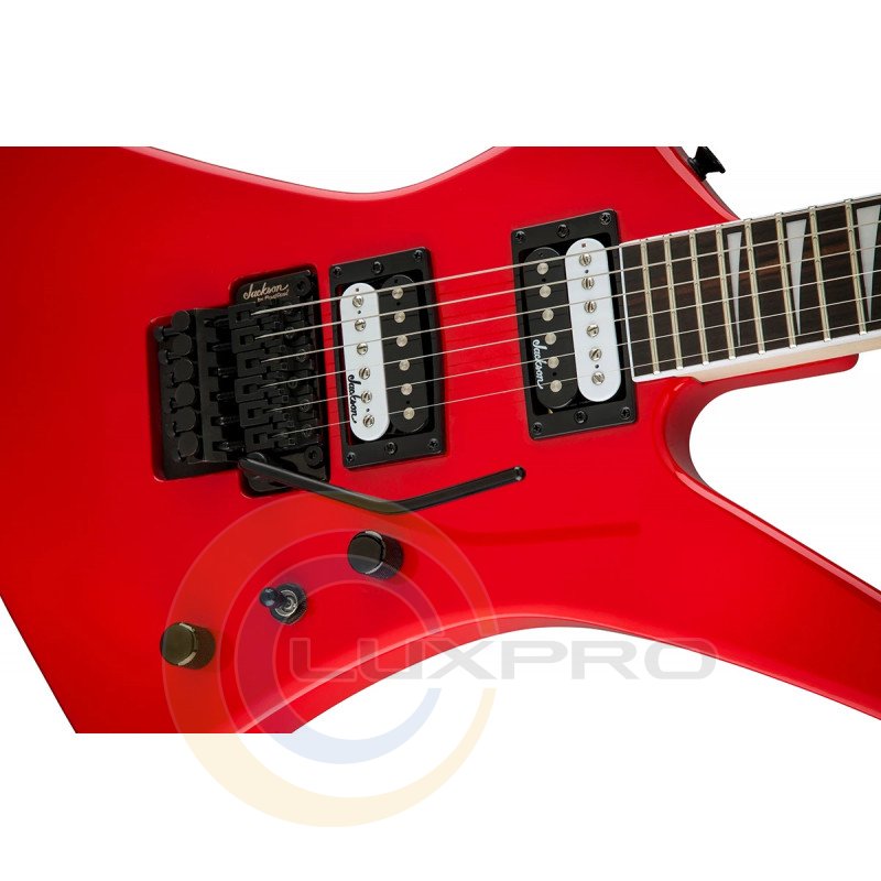 Пара звукоснимателей Jackson high-output humbucking с керамическими магнитами выдает чистый объемный звук и настраивается с помощью 3-позиционного переключателя и регуляторов громкости и тона. Гитара Jackson JS32 Kelly ярко-красного цвета имеет черную фурнитуру, бридж Floyd Rose Licensed Jackson Double-Locking Tremolo и литые колки.