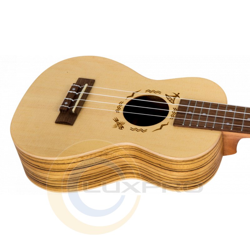 DUC525 SP/ZEB Concert - укулеле. Верхняя дека из европейской ели Энгельмана и корпус из зебрано создают четкий и яркий звук, когда вы играете соло в верхнем регистре, и теплый, бархатный звук, когда вы просто решили побренчать у камина. Наконец-то у вас есть обе возможности! Розетки на всех наших укулеле нарисованы от руки и выгравированы лазером. Каждая модель имеет уникальный дизайн, какая ваша любимая?