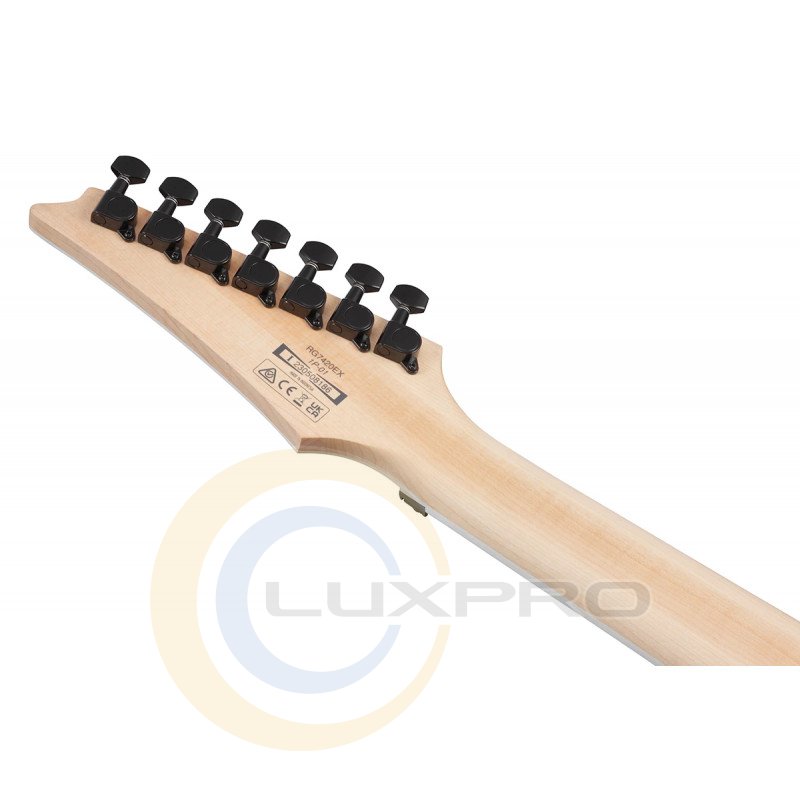RG7420EX BKF - электрогитара, 7 струн, серия RG Standard, форма корпуса – RG, дека – меранти, гриф – 3 части клена с накладкой ятоба, профиль – Wizard II-7, лады 24 Jumbo, звукосниматели (HH) – Quantum 7, тремоло-бридж – Edge-Zero II-7, цвет – черный.