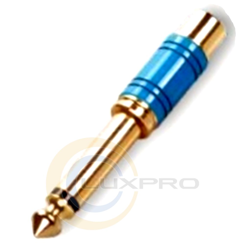 Переходник Jack 6.3 mono (папа) - RCA (мама) RA065-BL в металлическом корпусе синего цвета с позолоченными контактами, удобный и надежный аксессуар будет незаменим при соединении аудио кабелей.