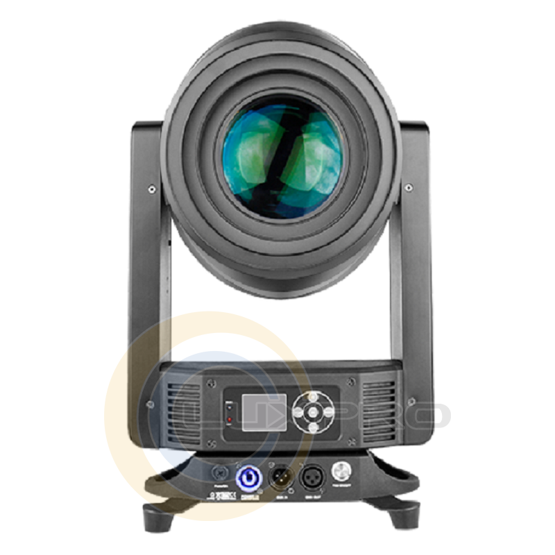 Прибор GRAND 382. SPOT оснащен новой высокоинтенсивной и эффективной лампой OSRAM SIRIUS HRI 382 Вт, обеспечивающей сверхвысокую светоотдачу благодаря набору высокого разрешения и точной оптики, которая помогает обеспечить чрезвычайно четкое и равномерное точечное освещение. Трехкольцевая полоса света в передней части обеспечивает волшебный и яркий динамический световой эффект, создаваемый 108 светодиодами SMD RGB мощностью 0,2 Вт 3-В-1.