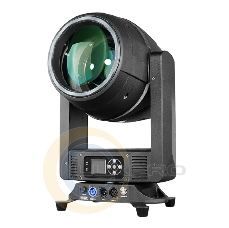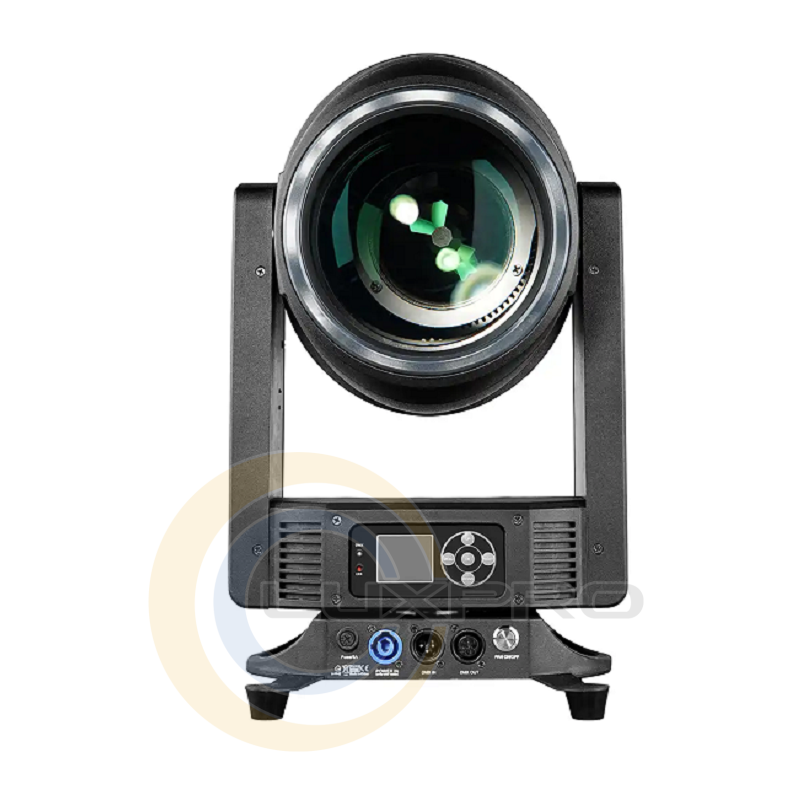 Прибор MASTER 382 имеет угол луча 1,8°, что помогает обеспечить сверхдальний эффект сплошного луча. Передняя кольцевая полоса света создает волшебный световой эффект, создаваемый 30 светодиодами SMD RGB мощностью 0,2 Вт 3-В-1. MASTER 382 оснащен рядом эффектов: 13 статических гобо, 13 дихроичных цветов, 6-цветное колесо, 2 призменных колеса, мороз, фокус и т. д. Он обеспечивает непрерывное быстрое и плавное движение PAN/TILT на 360° с переменной скоростью, что позволяет обеспечивает еще более яркий визуальный эффект шоу. Прибор поддерживает DMX, RDM (удаленное управление устройствами).