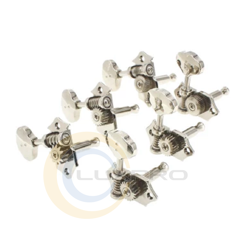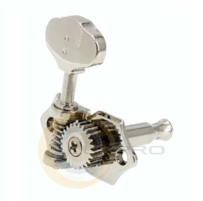 Колки для электрогитары PRN-3424-N0 Electric 3+3 Butterbean Button Nickel позволяют настроить ваш инструмент быстрее и точнее, чем традиционные колки. Каждый колок набора обладает индивидуальным передаточным числом, что обеспечивает одинаковую работу колков: 1 оборот примерно равняется 1 тону.