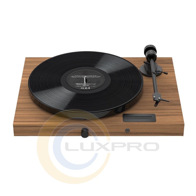 Опорный диск Pro-Ject Juke Box E выполнен из ДВП, имеет диаметр 300 мм и оснащен фетровым матом. Диск опирается на стальной подшипник, и двигается с помощью силиконового куска. Переключение скоростей 33/45 оборотов производится вручную. Все клеммы на задней панели Juke Box E позолочены и общее качество изготовления проигрывателя очень высоко, что редко встречается у моделей данной ценовой категории.
