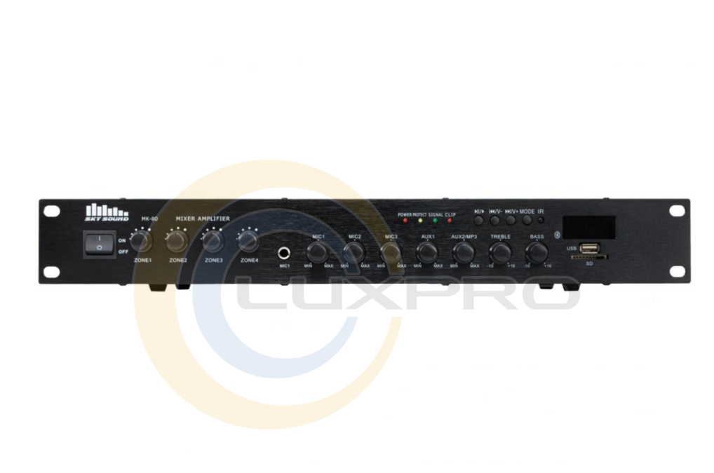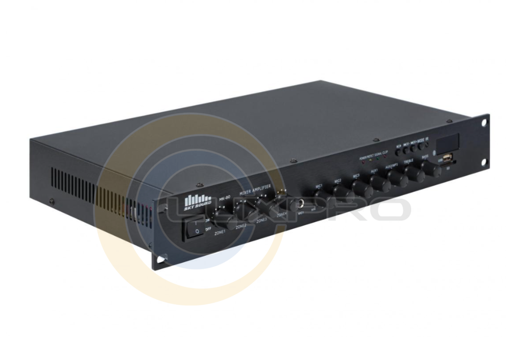MK-80W предназначен для создания небольших систем трансляции и озвучивания помещений с суммарной мощностью подключаемой акустики не более 80-ти Ватт. Данная модель трансляционных усилителей позволяет озвучивать помещения до 4-х различных зон (торговые предприятия, офисные помещения, кафе, рестораны и т.д.).