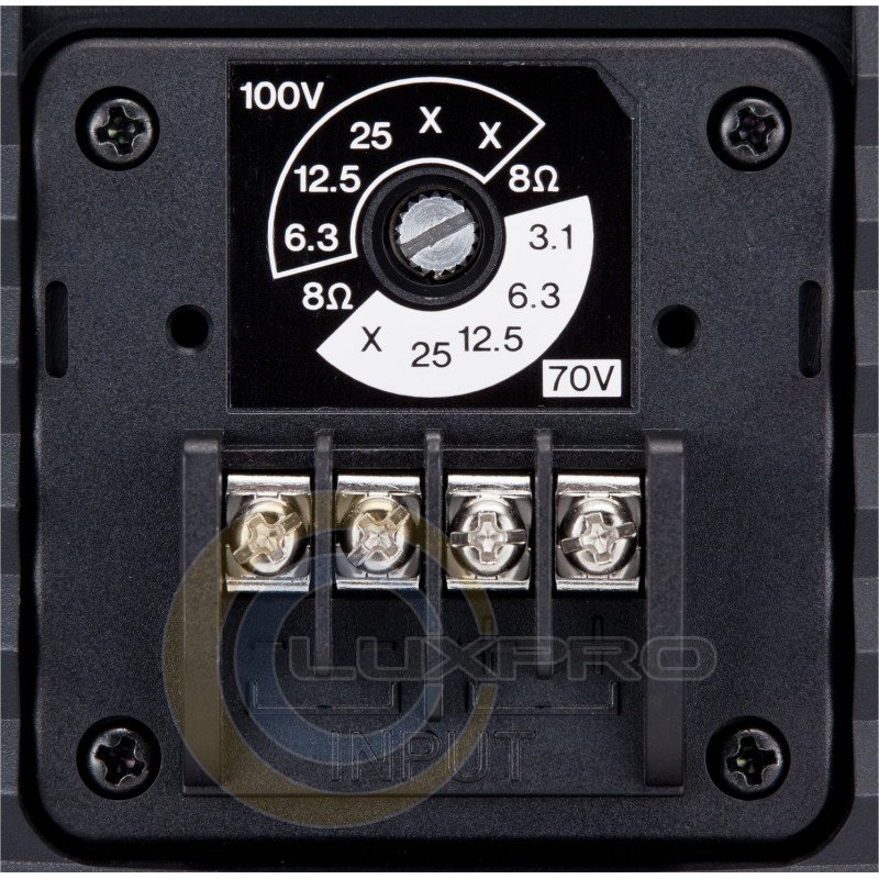 - переключаемая 8Ом или трансформатор 100/70В;