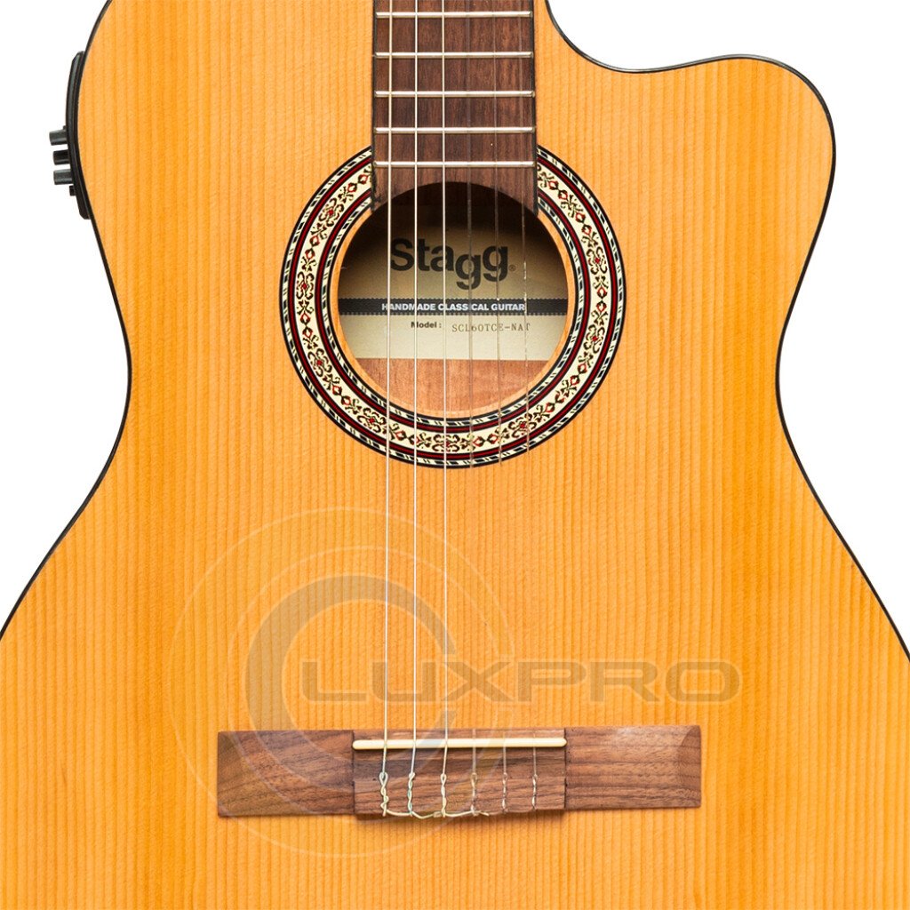 Электроакустическая гитара STAGG SCL60 имеет отличное, чистое звучание, исходящее из классического корпуса, которое понравится как начинающим, так и опытным музыкантам. Инструмент обладает стильным классическим дизайном и цветом, который придает ему элегантный вид. Стройный гриф и комфортное расстояние между струнами делают игру на гитаре STAGG удобной и приятной.