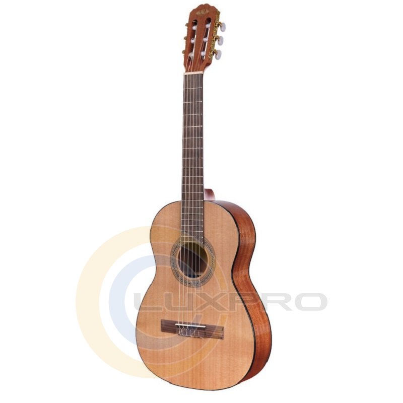 NYLON STRING CLASSICAL GUITAR 3/4 - классическая гитара представляет знакомые внешний вид и ощущение классической гитары с гарантией качества Kala в размере 3/4. Инструмент обладает кедровым топом, декой и грифом из махагони с глянцевым покрытием, стилизованной розеткой, головой грифа с прорезями и перламутровыми с золотым колками.