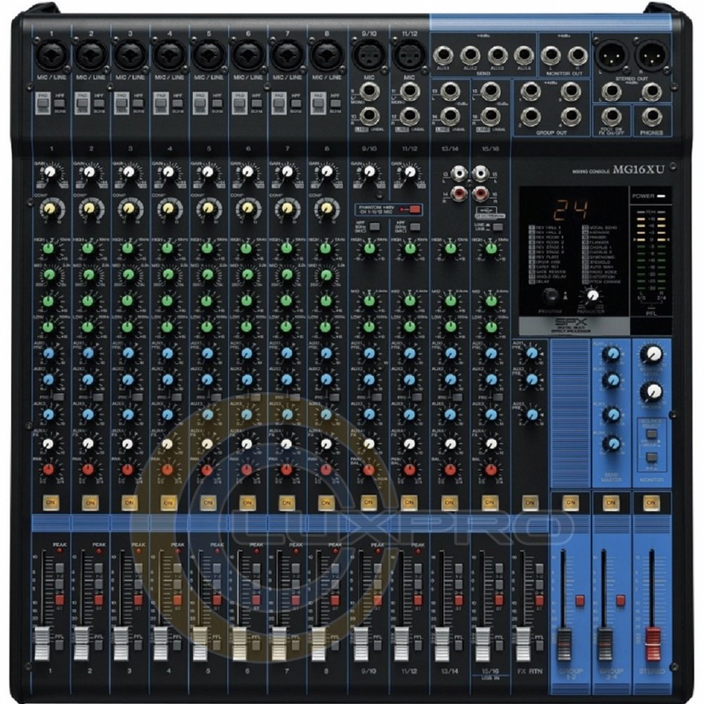 Благодаря USB подключению MG16XU можно использовать как 24 бит/192 кГц звуковую карту на 2 входа/выхода, что идеально подходит для записи живых выступлений, демонстраций и многого другого. Каждый комбо канал оснащен 3-полосным эквалайзером, контролем панорамы и фильтром ВЧ. Также есть фантомное питание 48 В для использования с конденсаторными микрофонами.