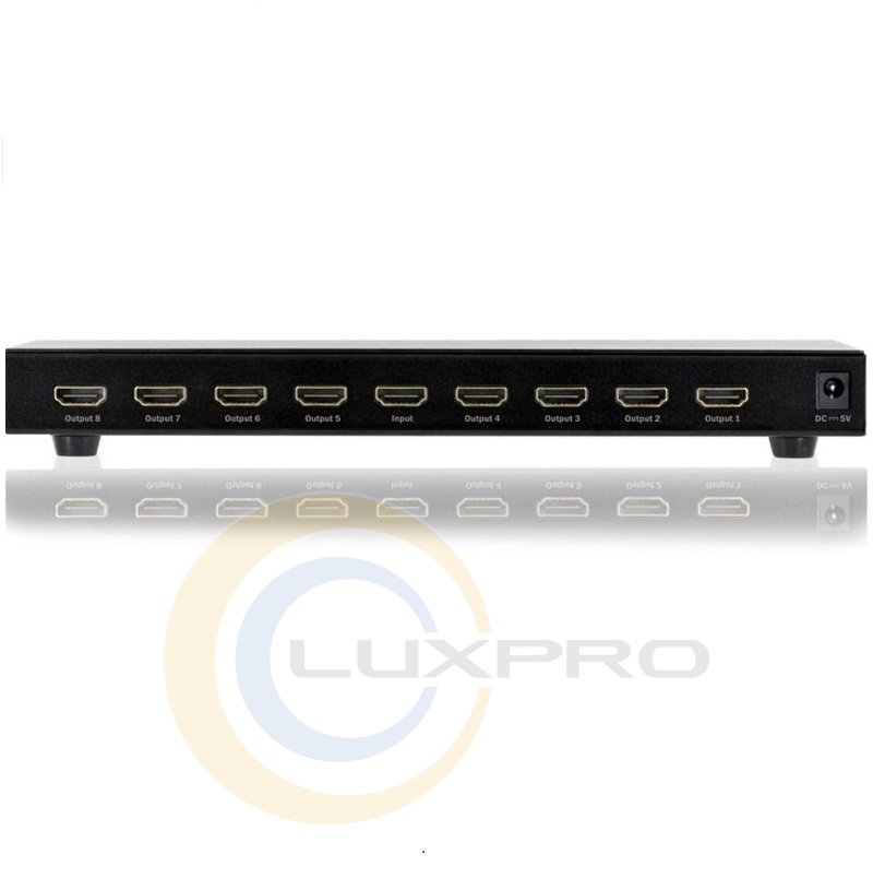 Разветвитель предоставляет возможность одноуровневого каскадного подключения до восьми дополнительных разветвителей HDMI (8 портов) для распределения сигнала максимально на 64 воспроизводящих устройства.