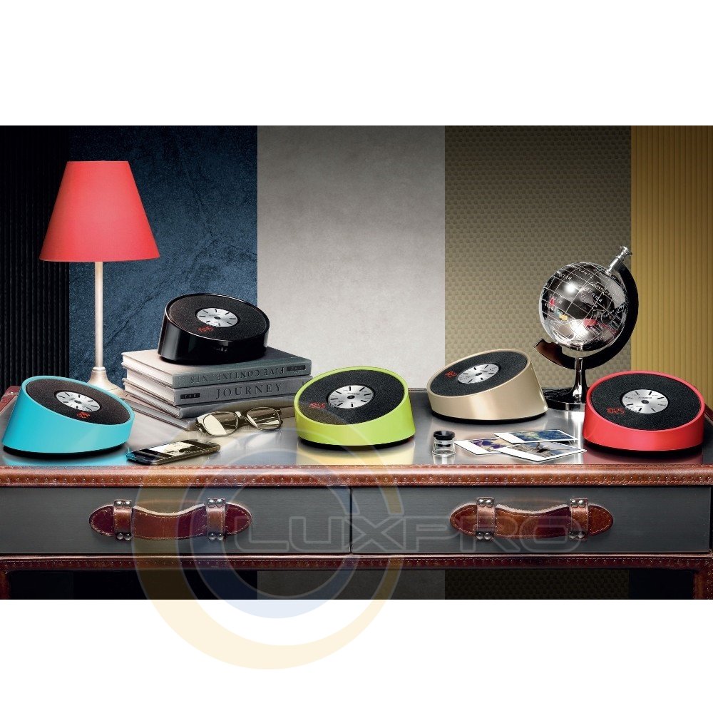 Стильные часы выполнены в виде ярко-красного светодиодного индикатора, перемещающегося вдоль окружности гриля. Часы имеют функцию будильника, поэтому систему можно установить у кровати и задать требуемое время пробуждения. Помимо того, встроенный USB-порт позволяет перезаряжать смартфон или планшет во время его использования.