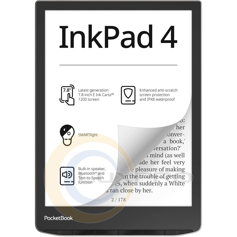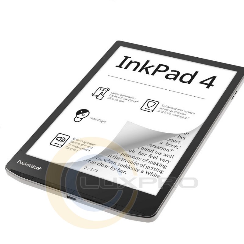 PocketBook InkPad 4 выдерживает погружение в пресную воду на глубину до 2 метров на 60 минут. Экран электронной читалки имеет улучшенную защиту от царапин, что является отличной новостью для пользователей, которые любят читать в дороге.