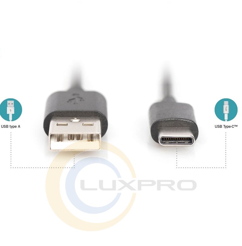 Готовый кабель ASSMANN USB 2.0 (AM/Type-C) 1.8m, black