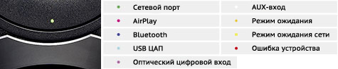 Индикатор показывает рабочее состояние АС и источник сигнала