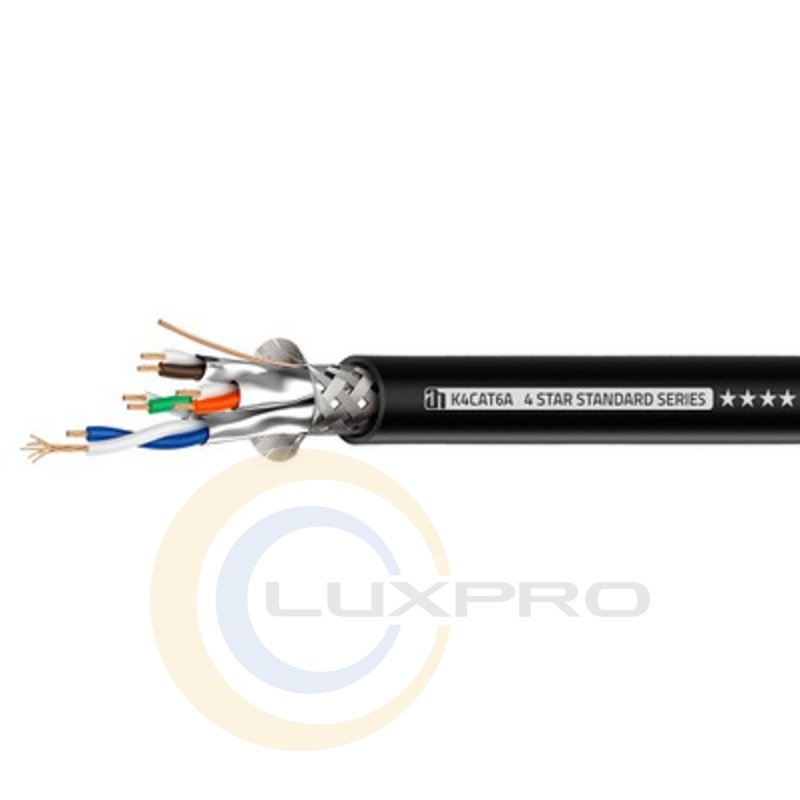 Профессиональный сетевой кабель из нашей 4-ЗВЕЗДОЧНОЙ СЕРИИ «Стандарт». Единица упаковки: 100 м в одном экземпляре. Сверхпрочный кабель благодаря специальной алюминиевой фольге и оболочке из ПВХ. Подходит для использования на открытом воздухе благодаря термостойкой оболочке. Четыре индивидуально экранированные витые пары проводов (S/FTP).