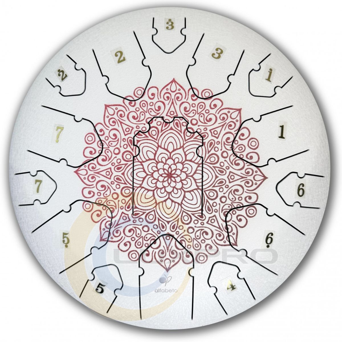 Глюкофон Alfabeto GLP13 - это инструмент, который привлекает внимание своей красотой и мелодичностью. Размер корпуса этой модели - 13 дюймов, что делает его одним из самых больших среди всех. Инструмент имеет 15 лепестков для игры, каждый из которых пронумерован, чтобы помочь Вам быстро найти нужную ноту. GLP13-15ORN единственная модель в ассортименте с тональностью D (ре).