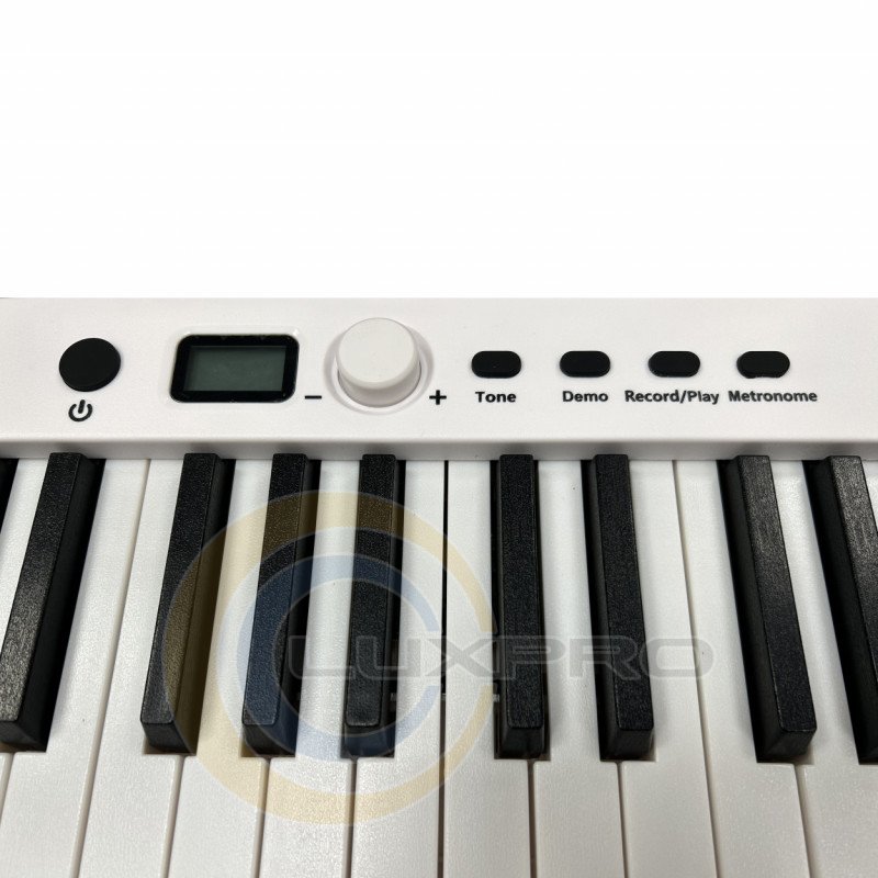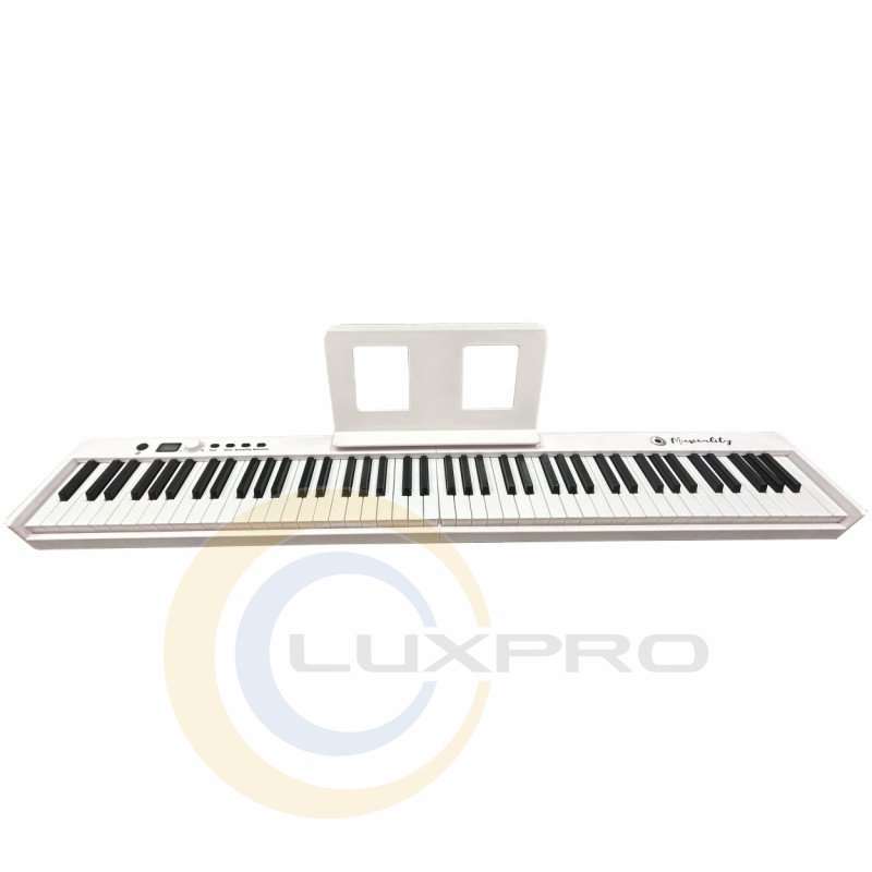 Складное пианино Musicality CP88 _CompactPiano оснащено 88-ю чувствительными клавишами со специальным покрытием, которое имитирует деревянную текстуру, модулем Bluetooth для синхронизации с другими устройствами и множеством других функций, которые пригодятся как новичкам, так и профессионалам. Пианино имеет в памяти 128 встроенных тонов, 128 различных ритмов и 21 демо-песню. Есть много различных функций и режимов: Velocity (скорость нажатия клавиш), Split (разделение клавиатуры), Drum Kit (набор ударных инструментов), метроном, транспонирование, вибрато, запись и воспроизведение и т.д.