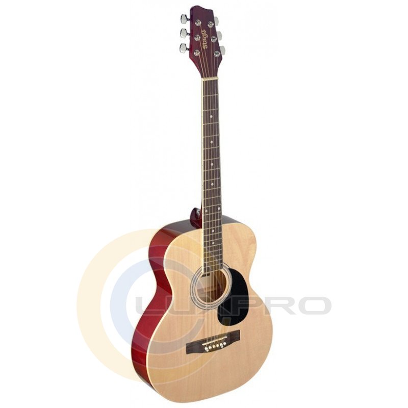 SA20A NAT - акустическая гитара Auditorium имеет отличное, чистое звучание и глубокие басы, понравившиеся как начинающим, так и опытным музыкантам. Инструмент обладает стильным классическим дизайном и цветом, который придает ему элегантный вид. Стройный гриф и комфортное расстояние между струнами делают игру на гитаре Stagg SA20A удобной и приятной.