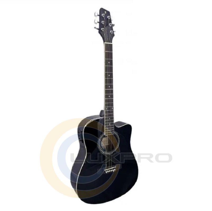 Электроакустическая гитара SA20DCE BLK. Стройный гриф и комфортное расстояние между струнами делают игру на гитаре Stagg удобной и приятной. Активная система усилителя – трансдьюсер под седлом и эквалайзер с регуляторами громкости, баса, средних и высоких частот, переключателем фазы и индикатором низкого заряда батареи – этого более чем достаточно для прекрасной звуковой симфонии гитары. Stagg известен своими надежными инструментами, поэтому вы можете быть уверены, как эта гитара.