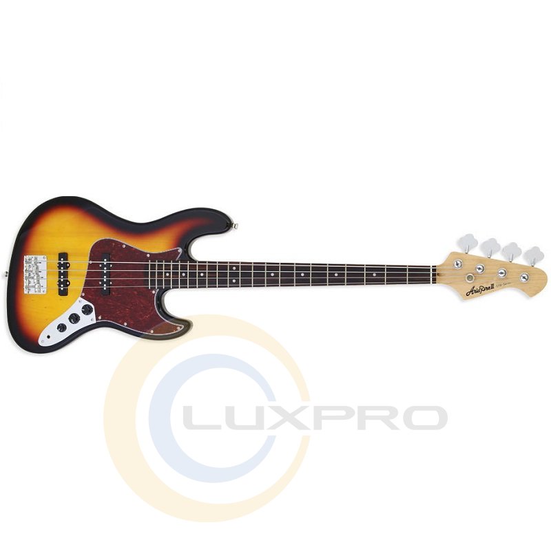 В ARIA STB-JB/TT 3TS используется бридж VFB-1. В качестве звукоснимателей применены два сингла OJ-1. В темброблоке можно найти два регулятора громкости и один регулятор тона. Мензура у гитары длинная и составляет 864 мм (34”) – может использоваться басистами с большими руками. Фурнитура у гитары хромированная, а цвет – 3-х тоновый санберст. В общем и целом, данная бас-гитара будет идеальным решением для начинающего музыканта, который только осваивает путь басиста. В ней применены надежные комплектующие, которые гарантируют, что гитара прослужит успешно и долго.