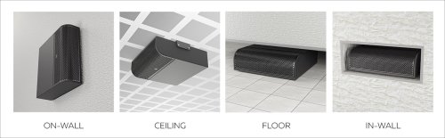 Кроме того, AIR-S26 можно закрепить на стене с помощью задних или боковых крепежных точек. Сабвуфер может поставляться с одним из двух видов крепежей, для настенной и потолочной установки, или без крепежа вообще. Учитывая его низкий профиль (16,5 см), он может полностью поместиться под диваном, столом, невысокой сценой, подиумом и т.п.
