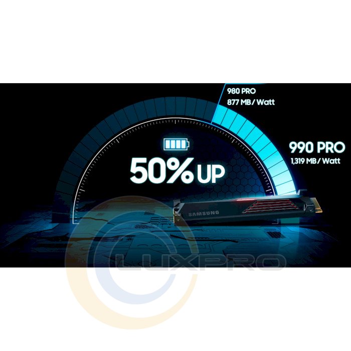 Более энергоэффективная производительность. Более высокая производительность обычно потребляет больше энергии. 990 Pro потребляет меньше энергии, при этом производительность на ватт на 50% выше, чем у 980 Pro. Конструкция с низким энергопотреблением позволяет достичь максимальной производительности PCIe 4.0 при оптимальной энергоэффективности.