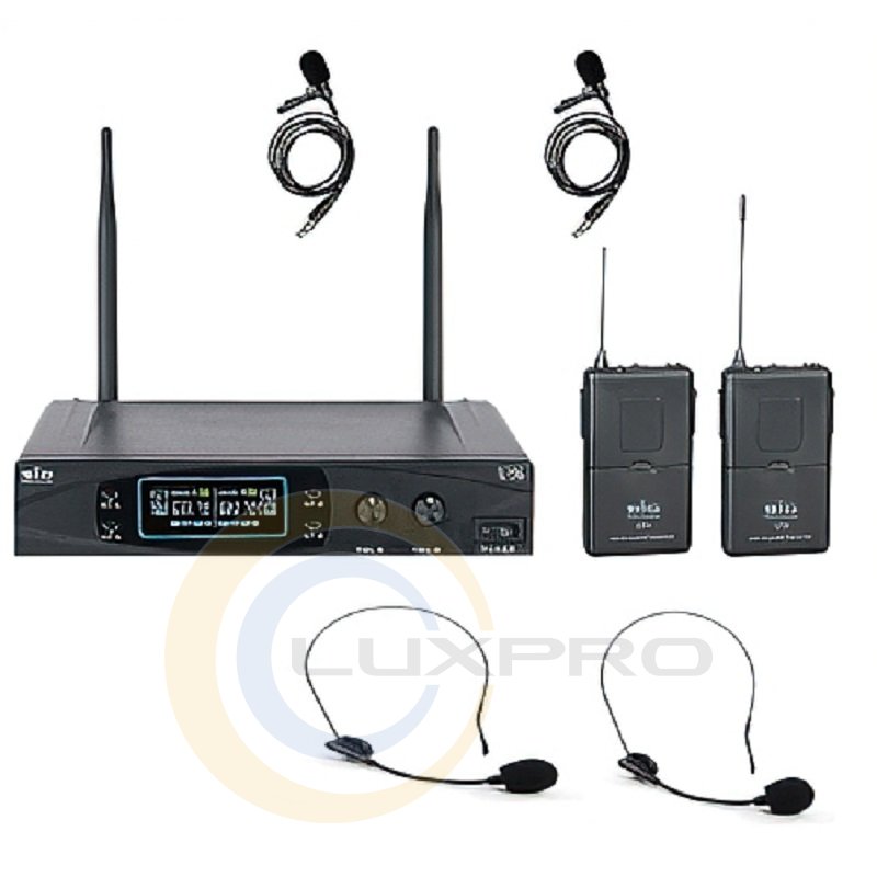 - тип: UHF радиосистема с двумя головными и двумя петличными микрофонами;