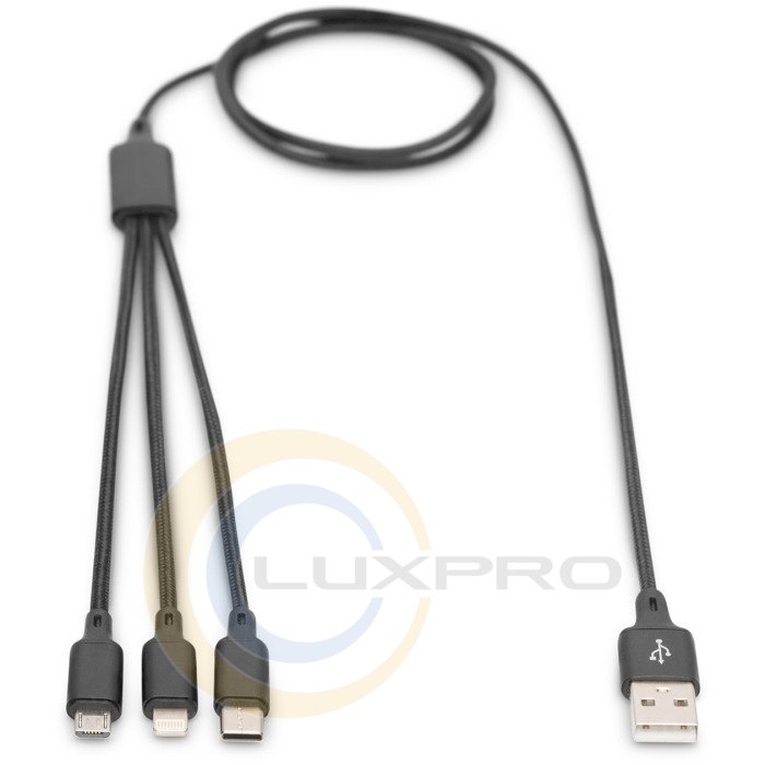 Кабель 3in1 USB-А - Type-C + microUSB + Lightning 1m Black выбрать и приобрести от самых лучших брендов DIGITUS по лучшей стоимости в интернет каталоге звукового оборудования LuxPRO. Готовый кабель c разъемами высшего качества с доставкой в любой уголок Киева. Заманчивые предложения на Кабельная продукция в интернет каталоге https://luxpro.ua/. Наберите прямо сейчас нашим консультантам на номер +38(044)221-1148 и мы доставим Кабельная продукция покупателям в: Полтава, Ужгород, Павлоград