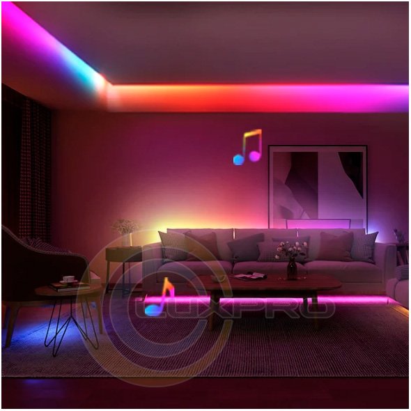 В отличие от традиционных светодиодных лент RGB, в наших светодиодных лентах используется инновационная технология RGBIC. Благодаря встроенным микросхемам IC (Independent Control) можно одновременно отображать несколько цветов на ленте.