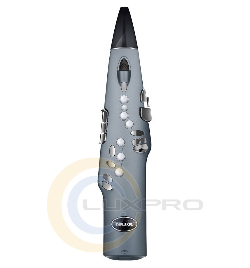 - аксессуары: чехол для переноски, крышка мундштука, резиновая насадка, кабель USB-C, наклейка NUX, ремешок, зарядное устройство, 2 мундштука, руководство пользователя;
