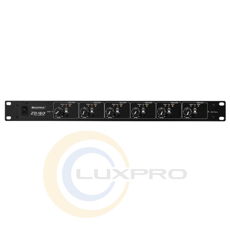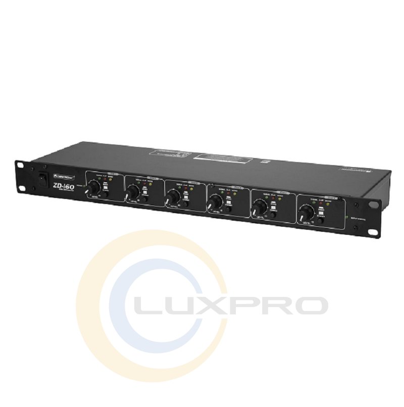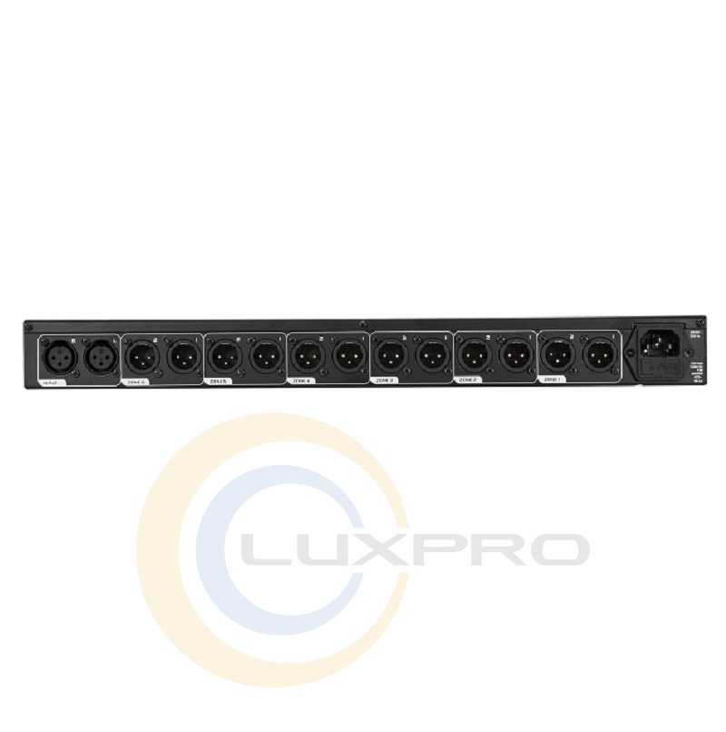 Расширяет любой микшер дополнительными выходами. 1 стереовход XLR. 6 выходов стереозоны (XLR). Каждая зона с регулировкой уровня и монофоническим переключателем. Светодиодный дисплей входного сигнала и режима моно/стерео. (19") Установка в стойку 48,3 см 1 U.