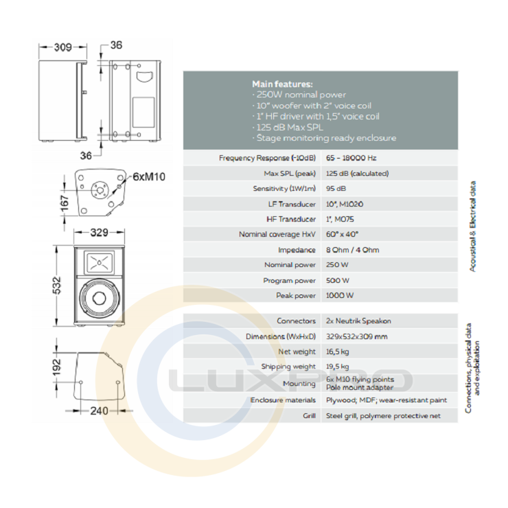 - Коннекторы: 2x Neutrik Speakon;