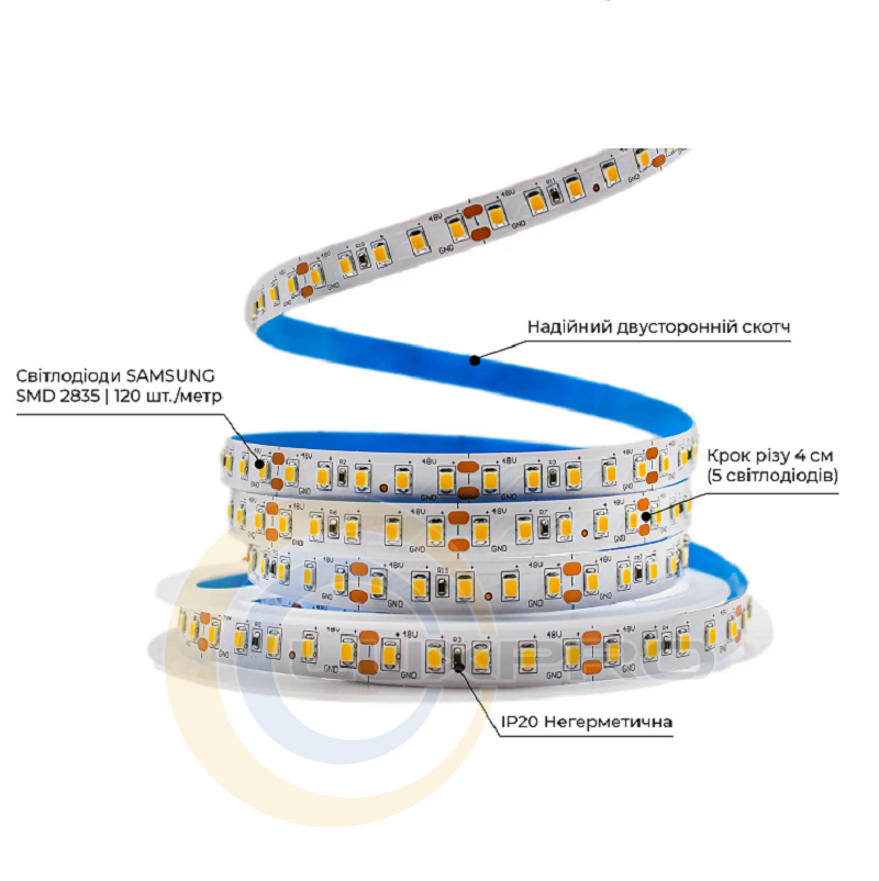 Светодиодная лента PROLUM™ 48V; 2835\120; IP20; Series "SG" представляет собой тонкую печатную плату, с одной стороны которой напаяны светодиоды, а с другой находится наклеивающаяся основа.