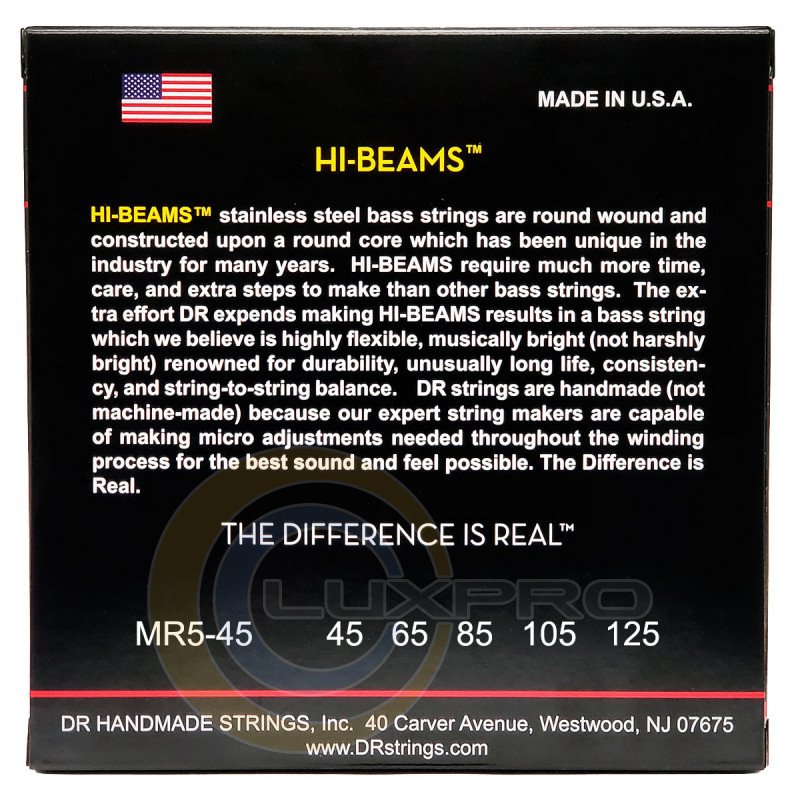 Струны для бас-гитары MR5-45. Дополнительные усилия, затрачиваемые DR на создание Hi-Beam, позволили получить очень гибкие басовые струны с очень музыкальным, ярким, но не резким звучанием. Они известны своей прочностью, необычайно долгим сроком службы, стабильностью и балансом между струнами. Они не едят ваши лады. HI-BEAM — это струны, которые музыканты выбирают за яркость, мощь и легкость игры.