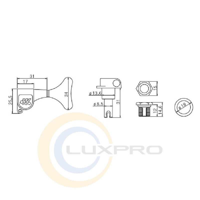 Колки для бас-гитары WJB650 4-in line CR. Лицензированная копия Wilkinson.