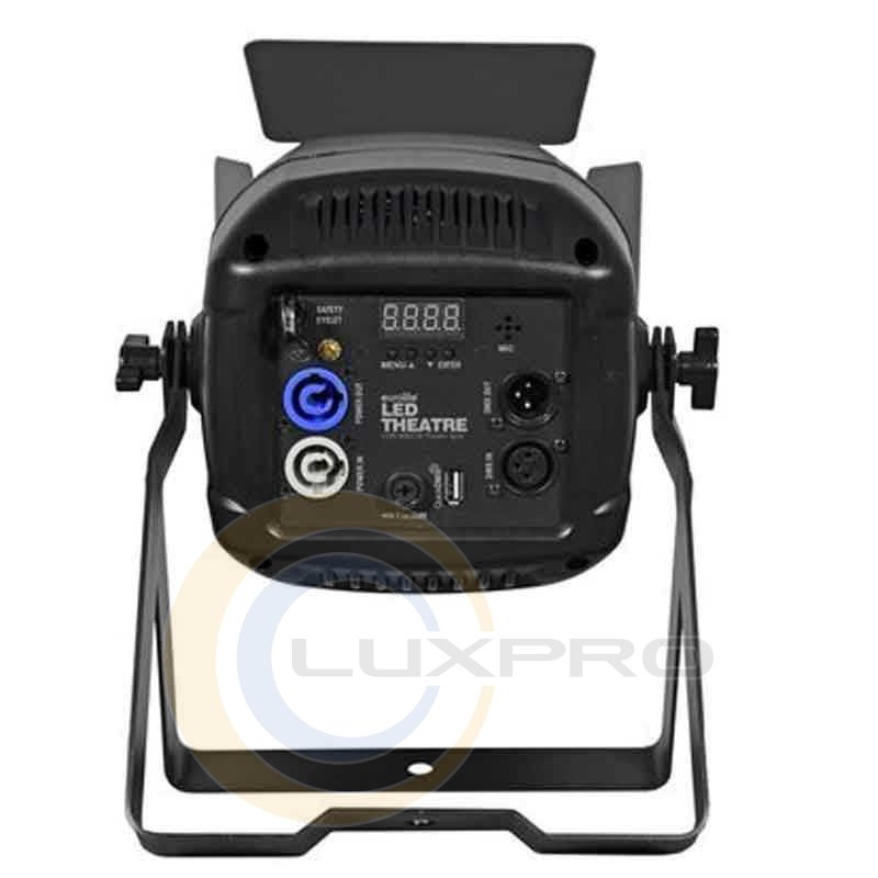 Имеет прочный и долговечный корпус, а устройство охлаждается вентилятором. В дополнение к 3-контактным разъемам DMX, у Theatre's Spotlight есть разъемы PowerCon для надежного источника питания. Благодаря сетевому выходу PowerCon можно последовательно подключить до 8 устройств. В комплект поставки входит практичный монтажный кронштейн, благодаря которому Theatre Spotlight можно без проблем установить на фермы и потолки, а также использовать в качестве напольного светильника.