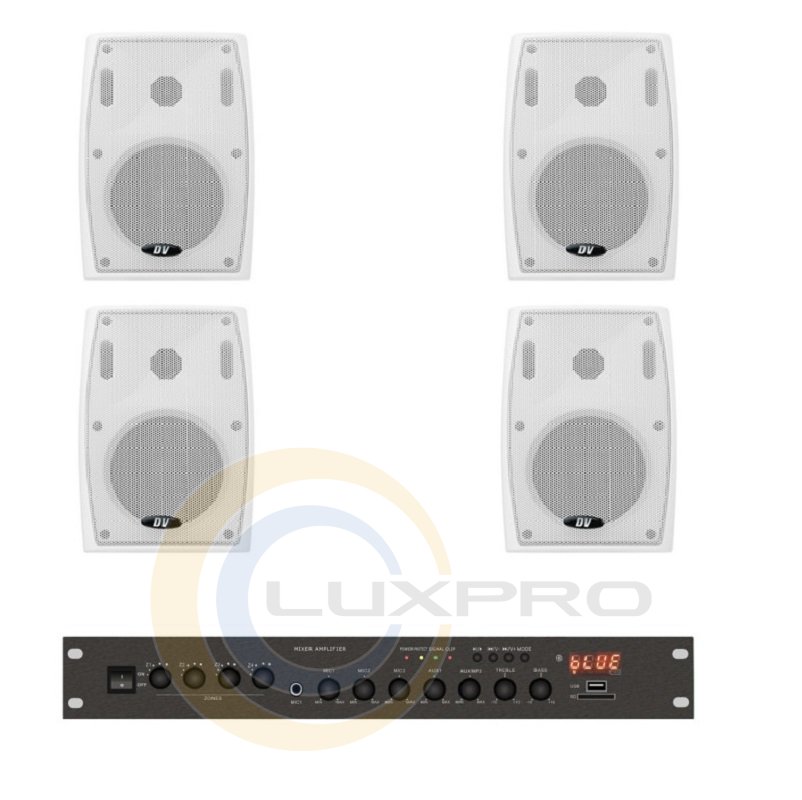 Акустический комплект LA804PB4W для фонового озвучивания помещений, офисов, кафе и открытых площадок средней площадью 120 кв. м. В комплект входит устройство для воспроизведения звука на АС и набор акустических систем. Кабель для подключения акустических систем в комплект не входит.