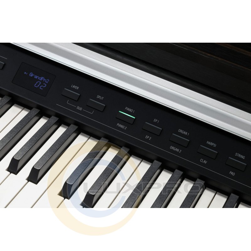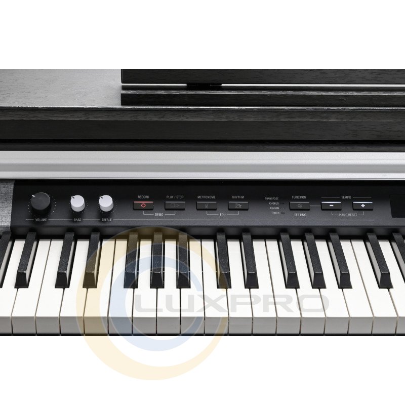 Клавиатура с молоточковым механизмом и градуированной взвешенностью обеспечивает ощущение игры на настоящем акустическом пианино. Реализованное здесь гладкое покрытие черных клавиш, имитирующее текстуру дерева, и белые клавиши с отделкой под слоновую кость позволят наслаждаться не только звуком инструмента, но и каждым прикосновением.