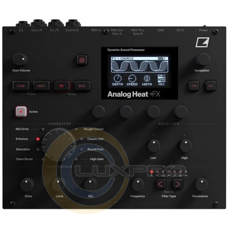 Analog Heat FX обладает различными аналоговыми и цифровыми входами и выходами, что позволяет вам интегрировать его в различные аудиосистемы и настроить его под свои нужды. Устройство оснащено MIDI In/Out/Thru с DIN Sync out, 2-мя ¼-дюймовыми симметричными аудиовыходами и входами, а также ¼-дюймовым стерео выходом для наушников. Дополнительно есть 2-мя ¼-дюймовыми разъемами для подключения CV/Expression педалей, что позволяет вам контролировать и модулировать эффекты в реальном времени.