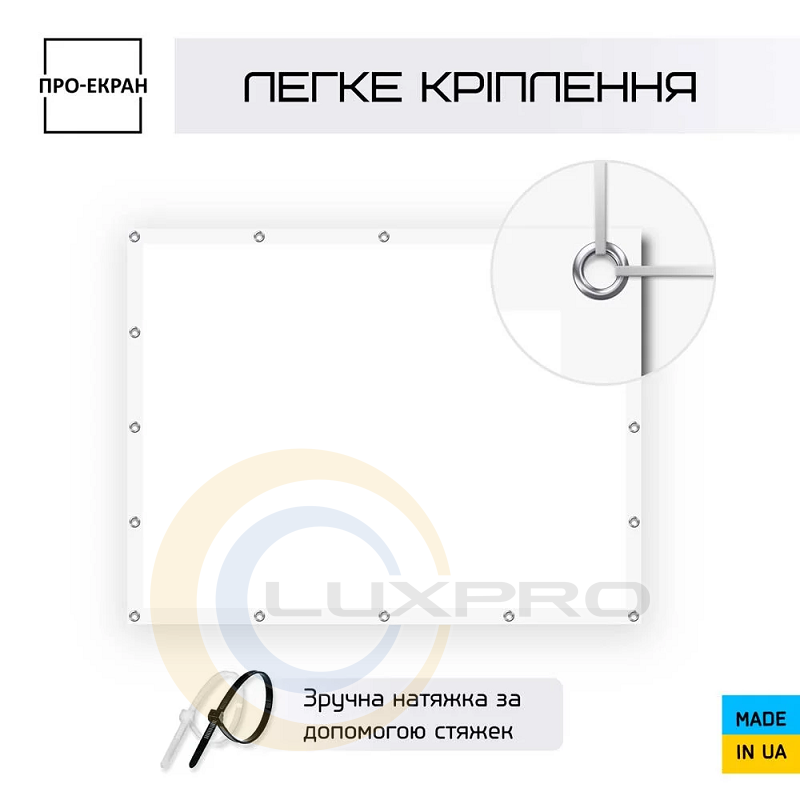 Для изготовления экранов ПРО-ЭКРАН используется высококачественное белое ПВХ полотно Matte White с коэффициентом усиления 1 и натуральной цветопередачей. Матовая поверхность экрана гарантирует отсутствие бликов, обеспечивает высокую яркость и большие углы обзора до 170°