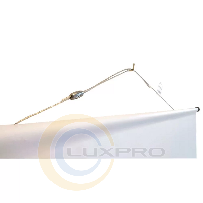Благодаря гибкой системе размещения вы можете легко повесить экран на стену, потолок и любую другую точку опоры за регулируемый по длине трос. В случае необходимости можно в любой момент снять экран и/или свернуть в компактный рулон. В комплект входят удобные липучки для фиксации экрана в свернутом положении