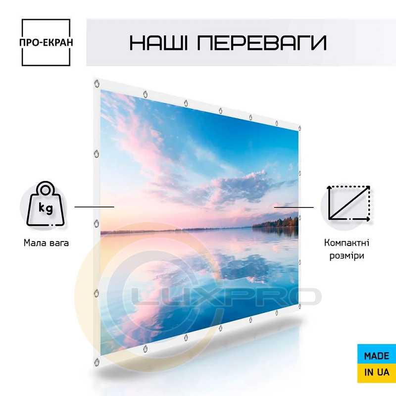 Для изготовления экранов ПРО-ЭКРАН обратной проекции используется высококачественная полиэстеровая ткань Rear Projection, которая обеспечивает высокую яркость и большие углы обзора до 170°.