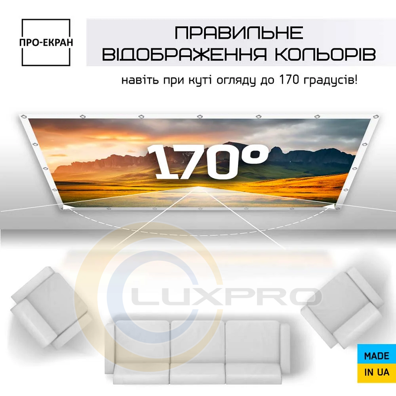 Для изготовления экранов ПРО-ЭКРАН используется высококачественное белое ПВХ полотно Matte White с коэффициентом усиления 1 и натуральной цветопередачей. Матовая поверхность экрана гарантирует отсутствие бликов, обеспечивает высокую яркость и большие углы обзора до 170°