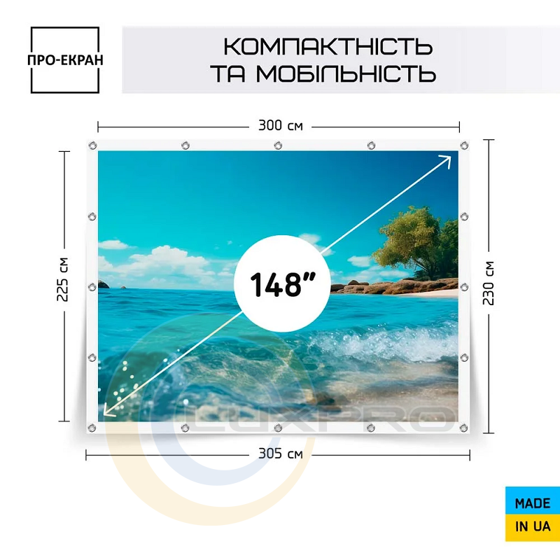 Экран прямой проекции на люверсах 300 на 225 (4:3), 148 дюймов
