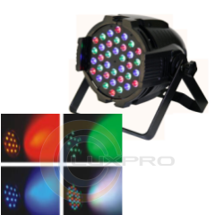 Светодиодный прожектор ALUMINIUM PAR 36*3W это полноценный прожектор на светодиодах 36 * 3W светодиодов (12 синих, 12 зеленных, 12 красных), электронный дисплей параметров прибора, RGB - 256 вариантов цветов, корпус из алюминия. Управление осуществляется в режимах: звуковая активация , автоматический режим, стробо режим и DMX. Угол раскрытия 60 град. Устанавливается в качестве фоновой подсветки помещений кафе, баров, ресторанов, ночных клубов а также для домашнего использования.