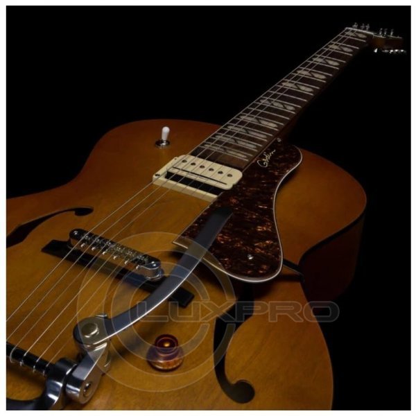 Корпус Jumbo изготовлен из канадской дикой вишни, что обеспечивает отличное звучание, а винтажная отделка добавляет элегантности. Гриф из клена и накладка из палисандра обеспечивают комфорт во время игры, а регулировка бриджа Graphtech TUSQ с роликовым седлом T.O.M. и хвостовая часть Bigsby Tremolo дополняют эту модель. Гриф длиной 24.84 дюйма создает приятные ощущения при игре, придавая насыщенный звук и привлекательный внешний вид.