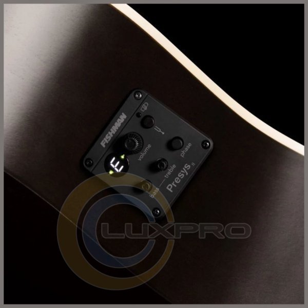 Система звукознимателей Fishman Presys II использует преобразователь под седлом для точной передачи резонанса на бридж, что обеспечивает естественное и динамичное воспроизведение звука. Система включает 2-полосный эквалайзер для регулировки низких и высоких частот, регулятор громкости, а также встроенный тюнер с удобным 7-сегментным дисплеем. Эта система позволяет использовать инструмент как для записи, так и для усиления через акустические усилители и эффекты.