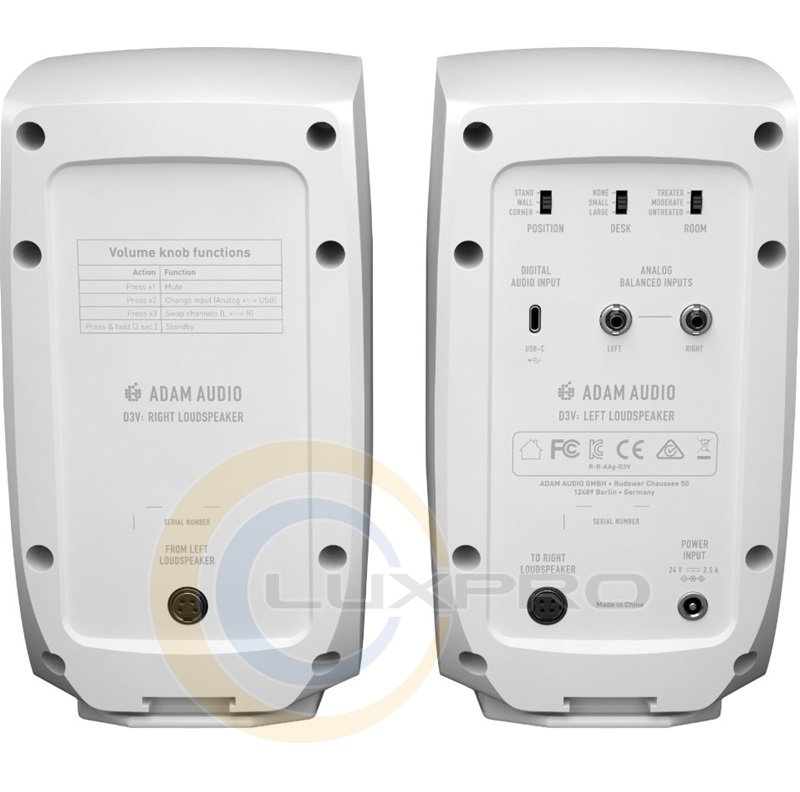 D3V оснащен входом USB-C, что позволяет системе функционировать как цифровое выходное устройство для прямого аудио с компьютеров и мобильных устройств, устраняя необходимость в аудиоинтерфейсе. D3V также предлагает сбалансированные входы ¼” TRS для традиционных аналоговых подключений, идеально подходящие для подключения к аудиоинтерфейсам или внешнему оборудованию, такому как синтезаторы, драм-машины или DJ-микшеры.